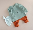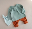 Розмір визначається за зростом малюка.У комплект входить кофтинка, штанці та шапочка.